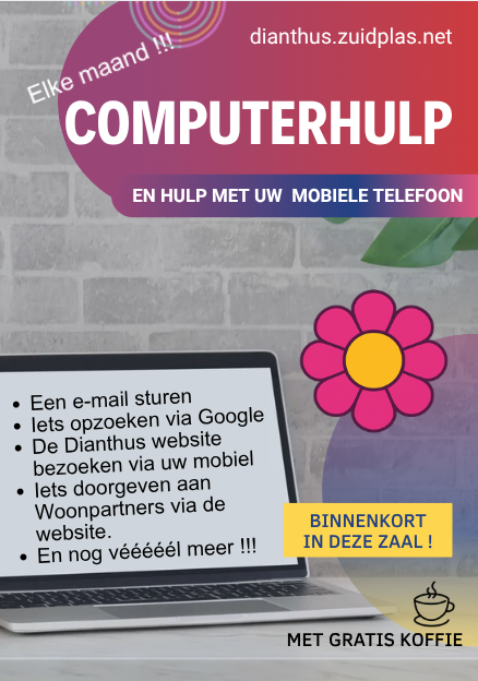 Als het niet direct opgelost kan worden maken we met u een afspraak om elkaar later in de recreatiezaal nog te zien en het probleem alsnog op te lossen. We hebben dan vaak ook meer tijd. U kunt dus ook alleen komen om een afspraak te maken voor verdere ondersteuning.